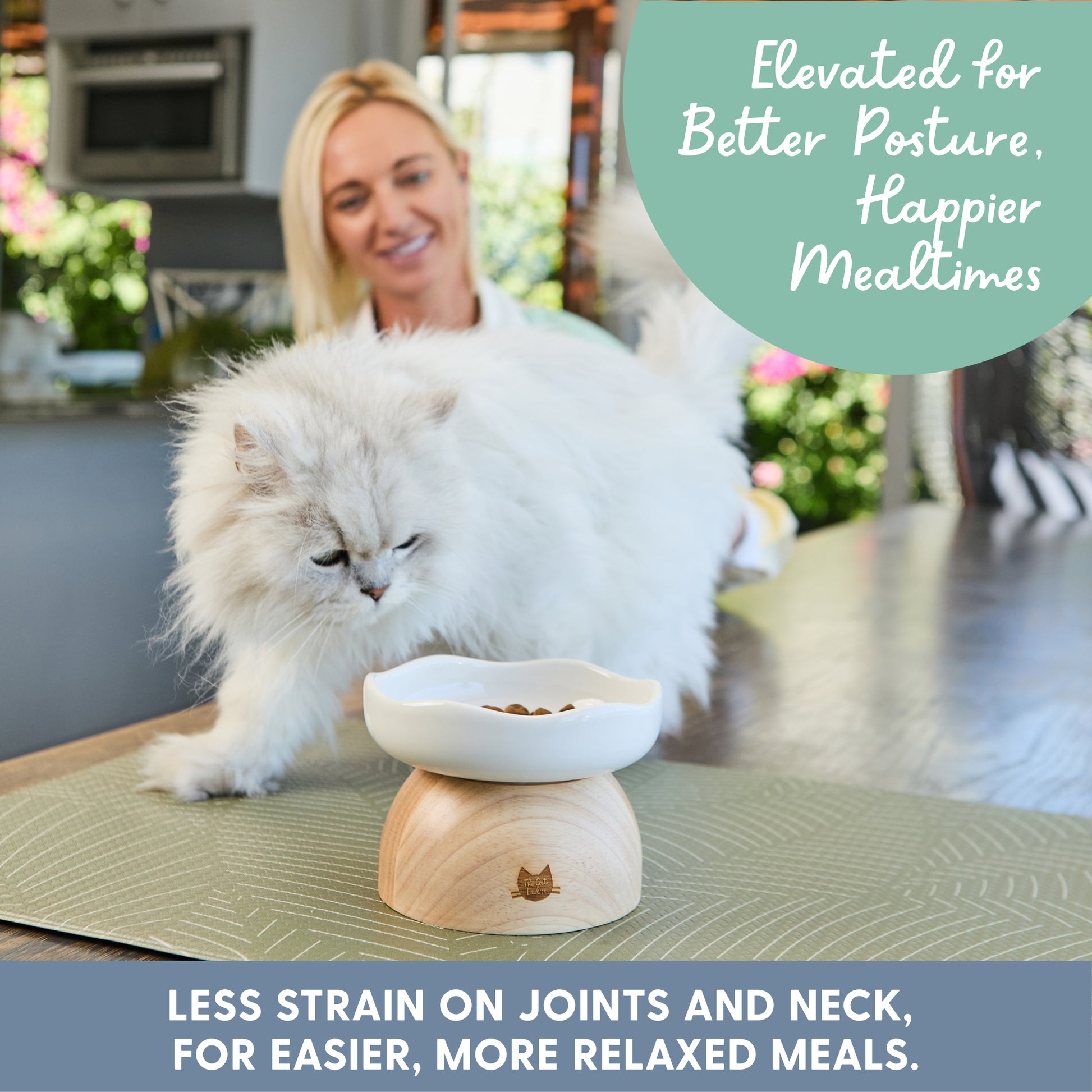 Bring Fun To Your Home: This cute cat food bowl is designed with an unparalleled aesthetic. Paired with the elegant wood base for a whimsical and classy touch to your space.