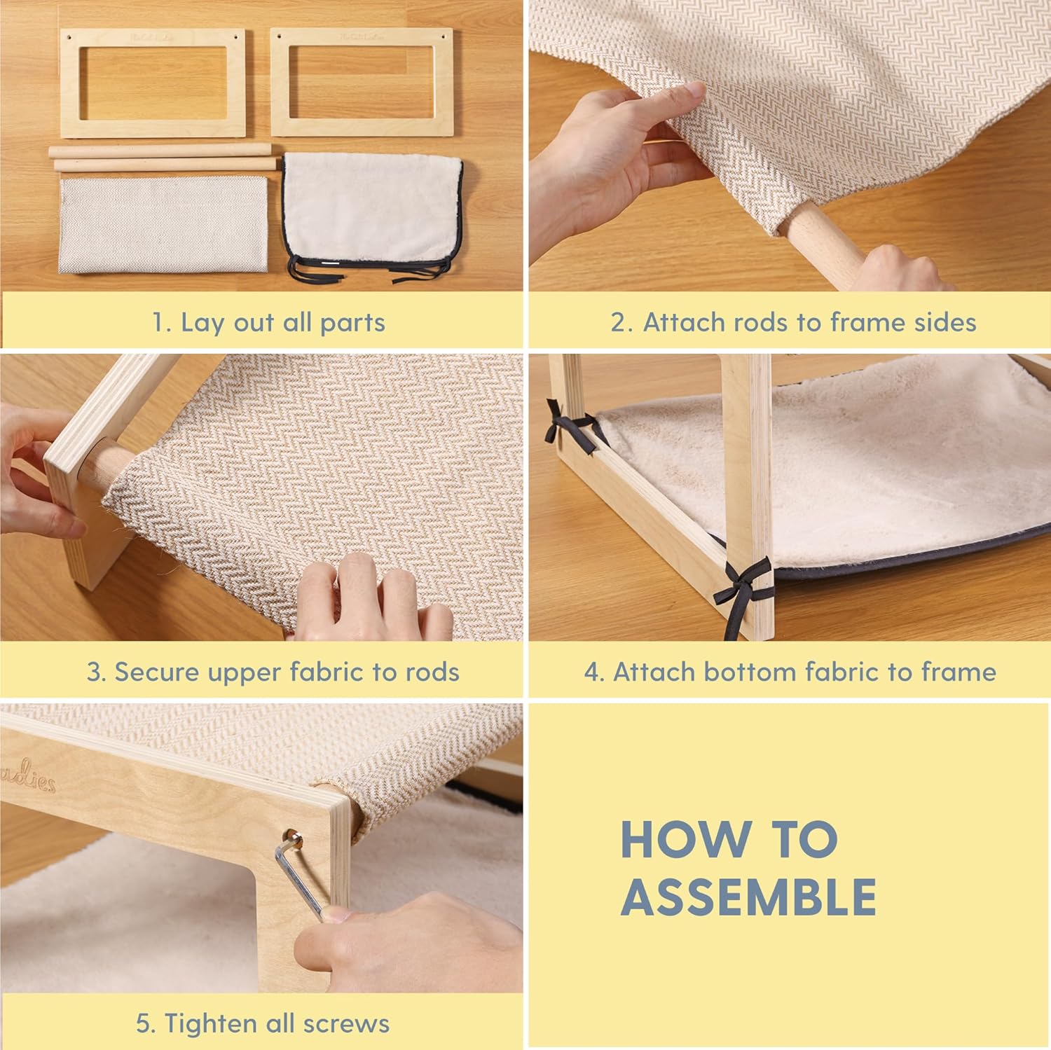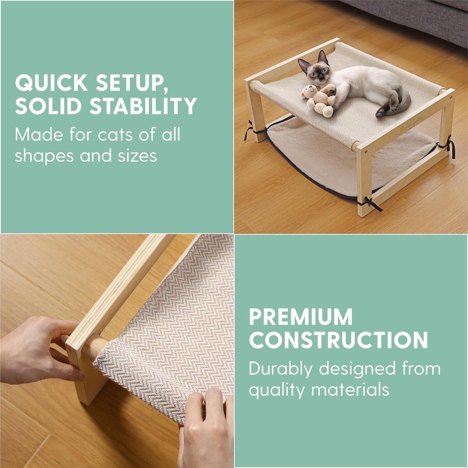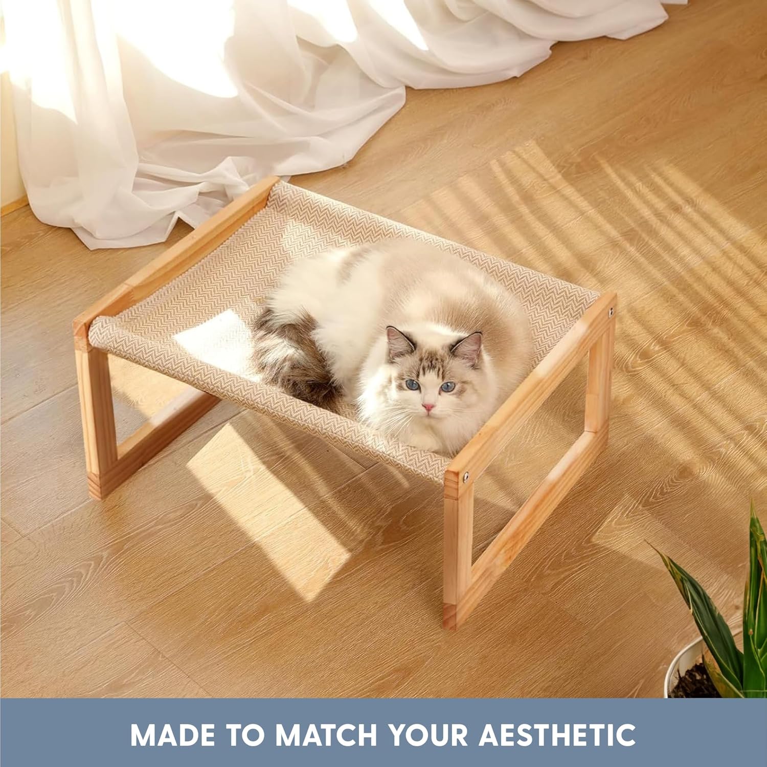 🌱 Built to Last: Crafted from durable birch plywood and beech wood rods, along with 100% polyester fabric, this raised cat bed is designed to withstand daily use, ensuring long-lasting comfort for your cat.